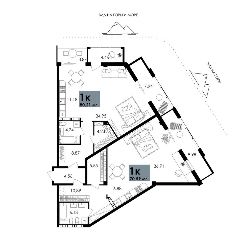 | 2-комн. | 86 - 134 м² | 19,2 - 26,9 млн ₽ |