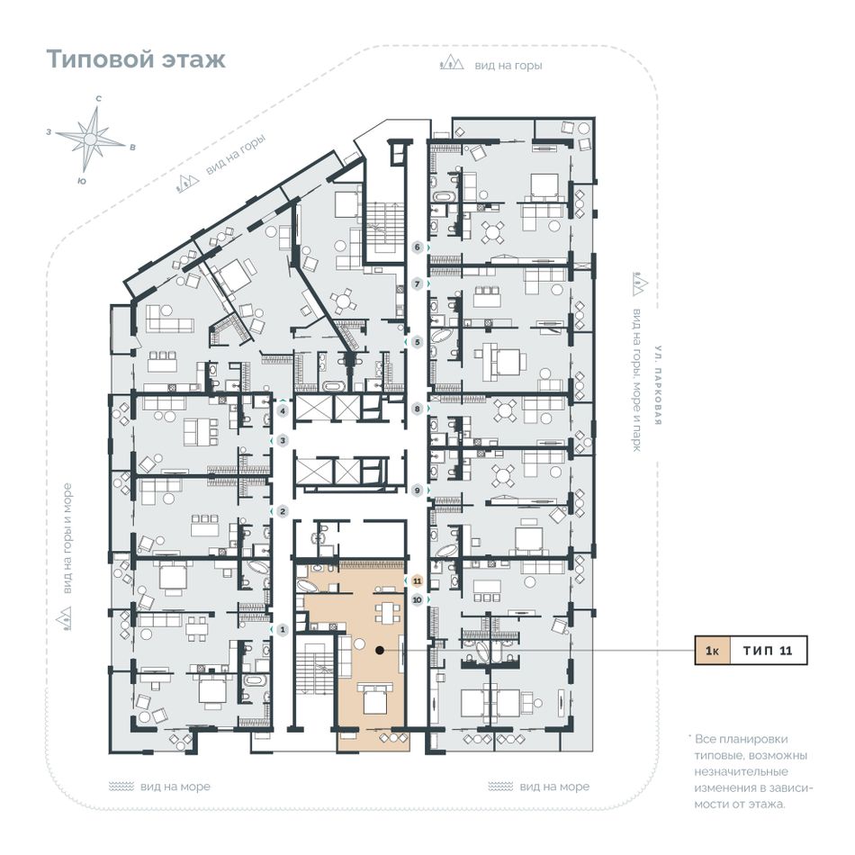 1-комнатная — 79,08 м² 10/12 эт. в Парк Плаза