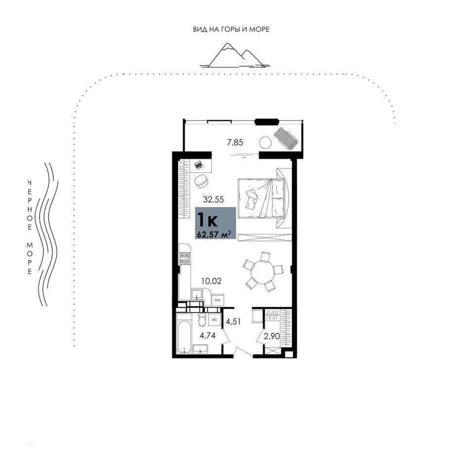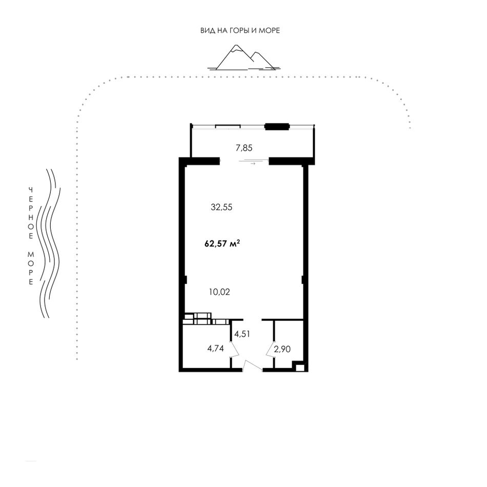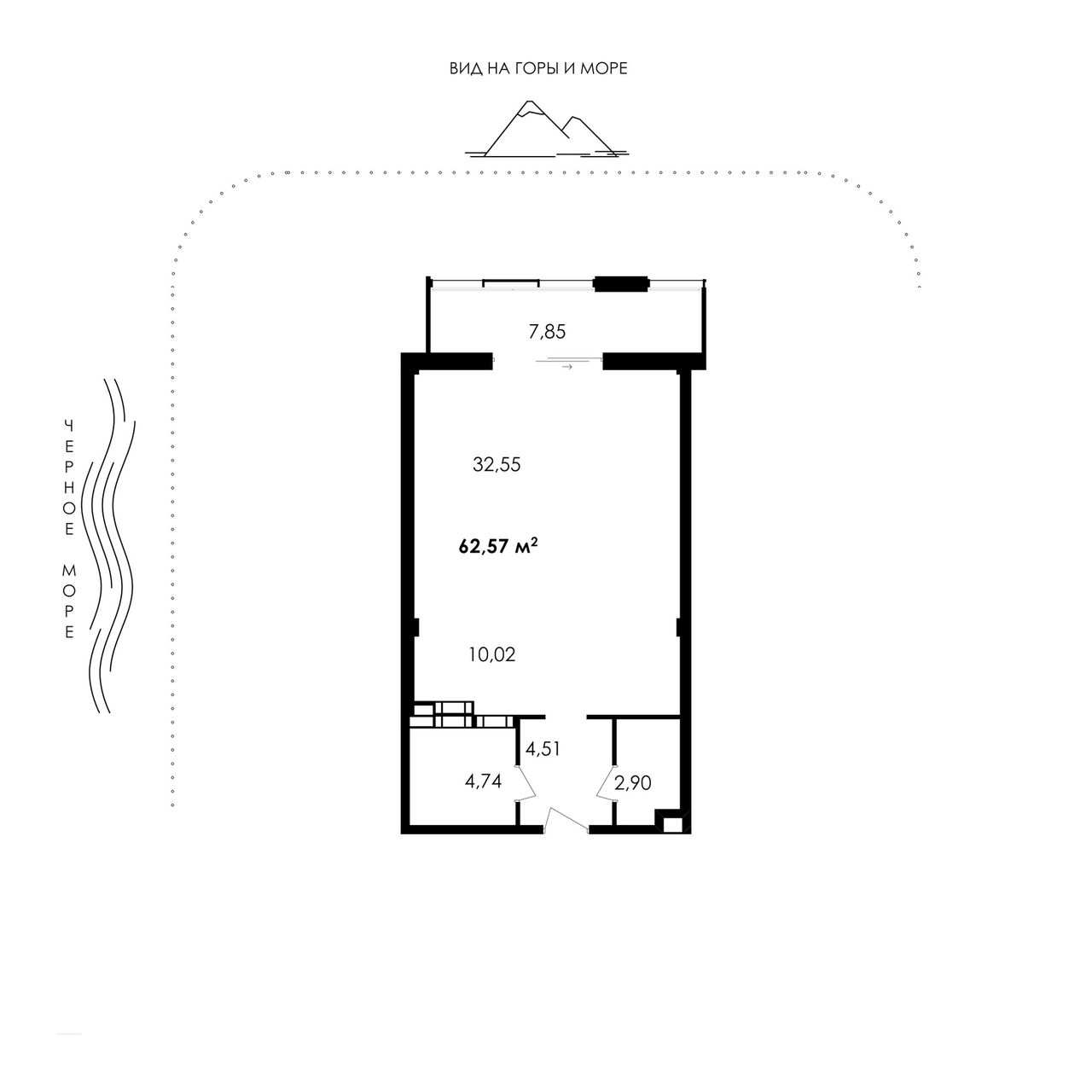 1-комнатная — 62,57 м² 11/12 эт. в Парк Плаза