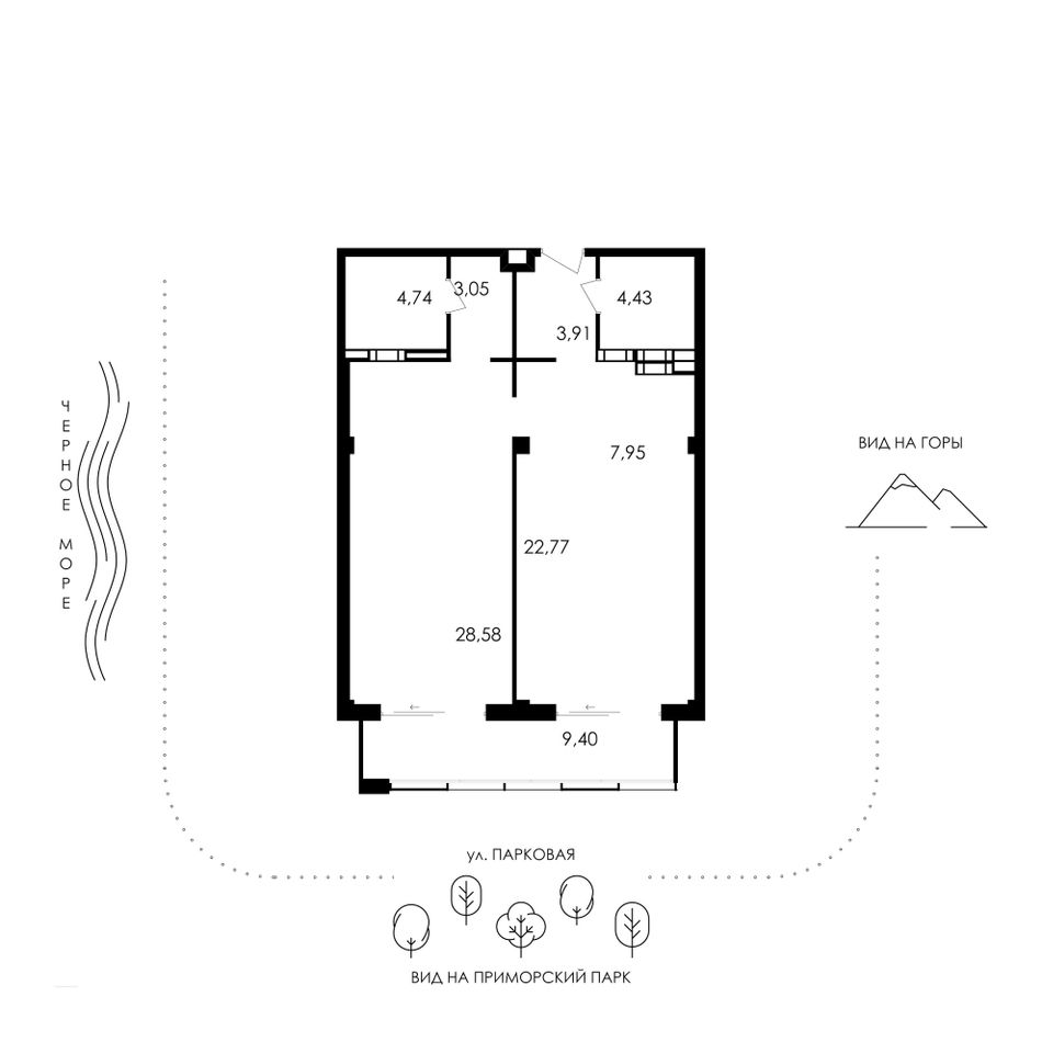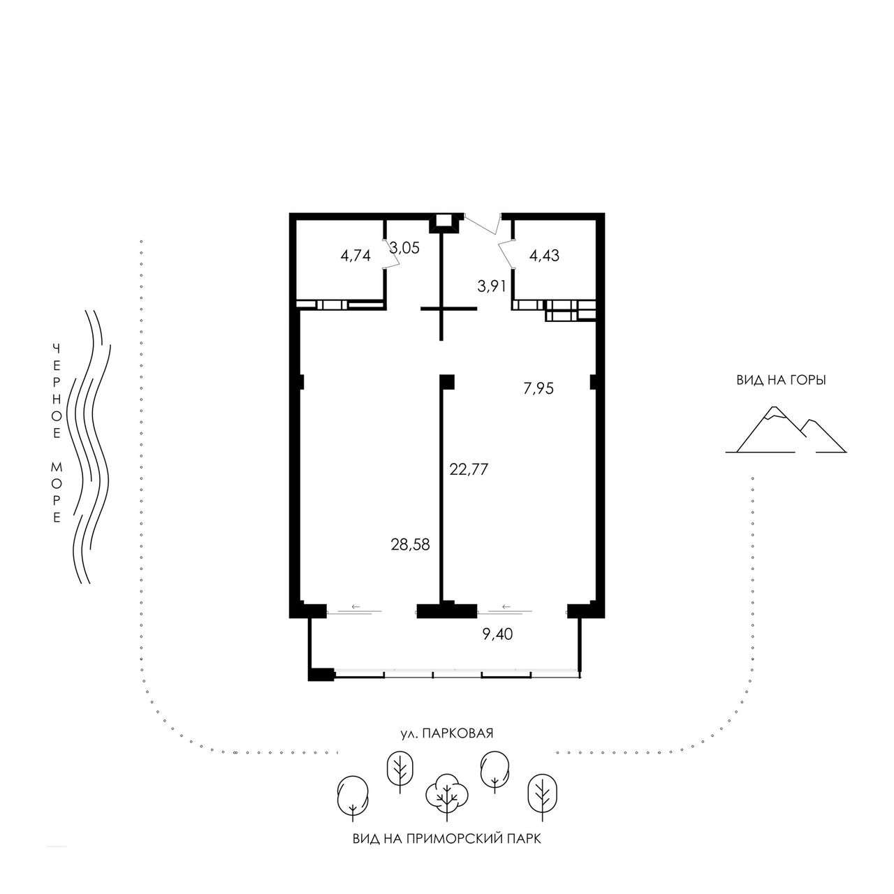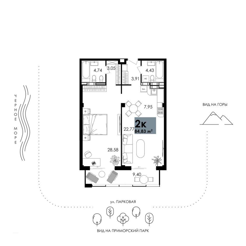2-комнатная — 84,83 м² 12/12 эт. в Park Plaza (Парк Плаза)