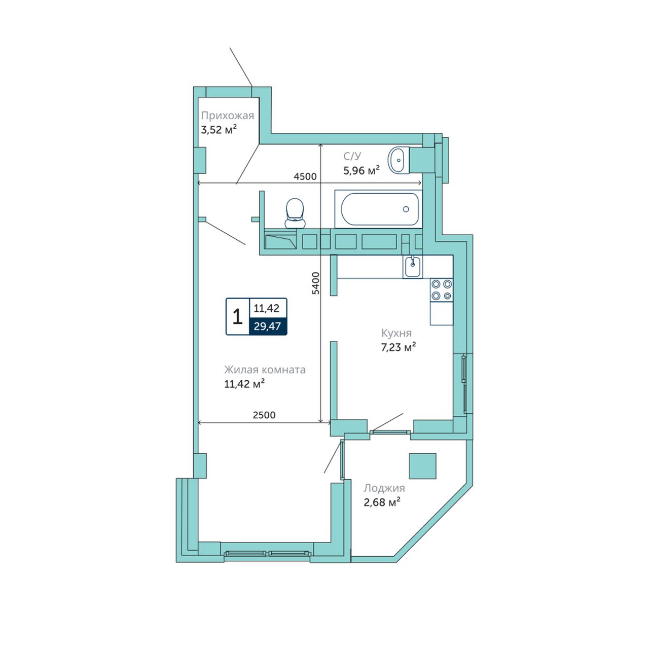 1-комнатная — 29,3 м² 3/13 эт. в Семейный