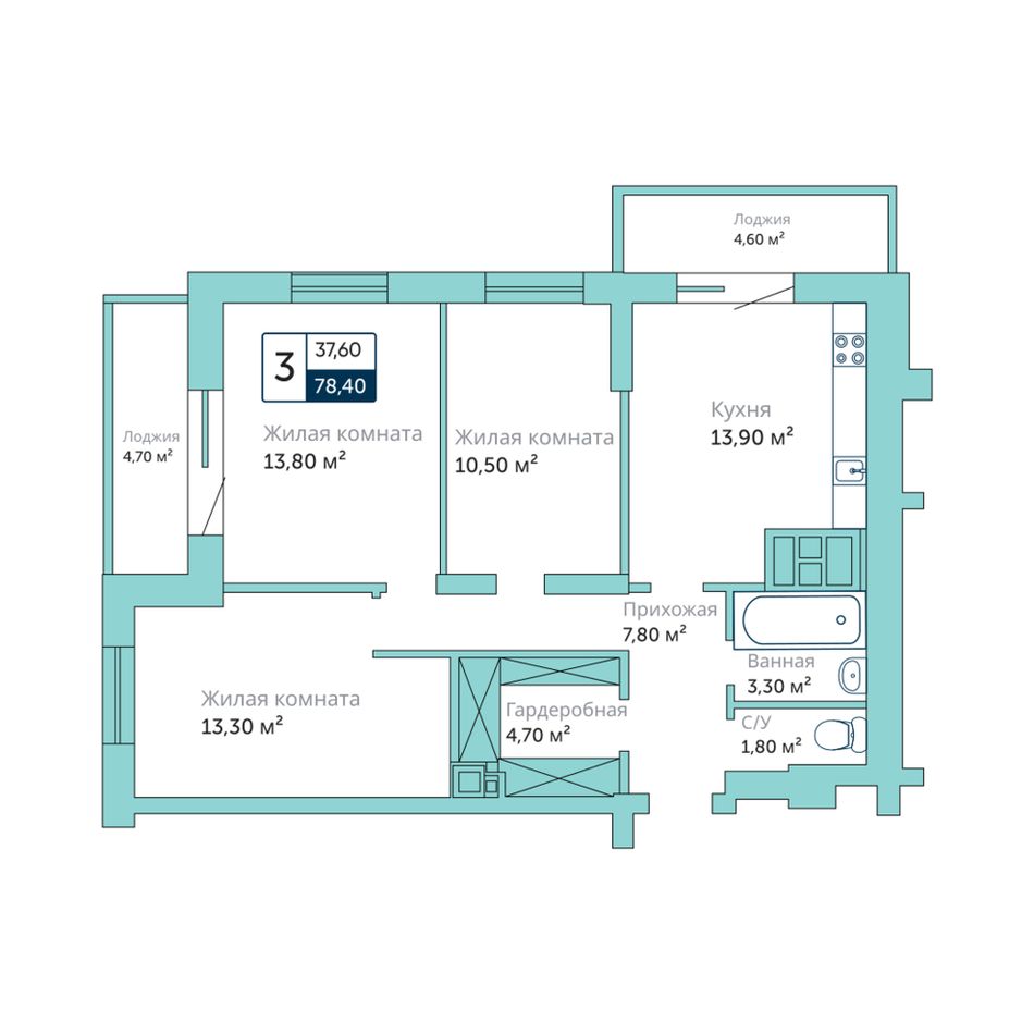 Общая площадь78,4 м²