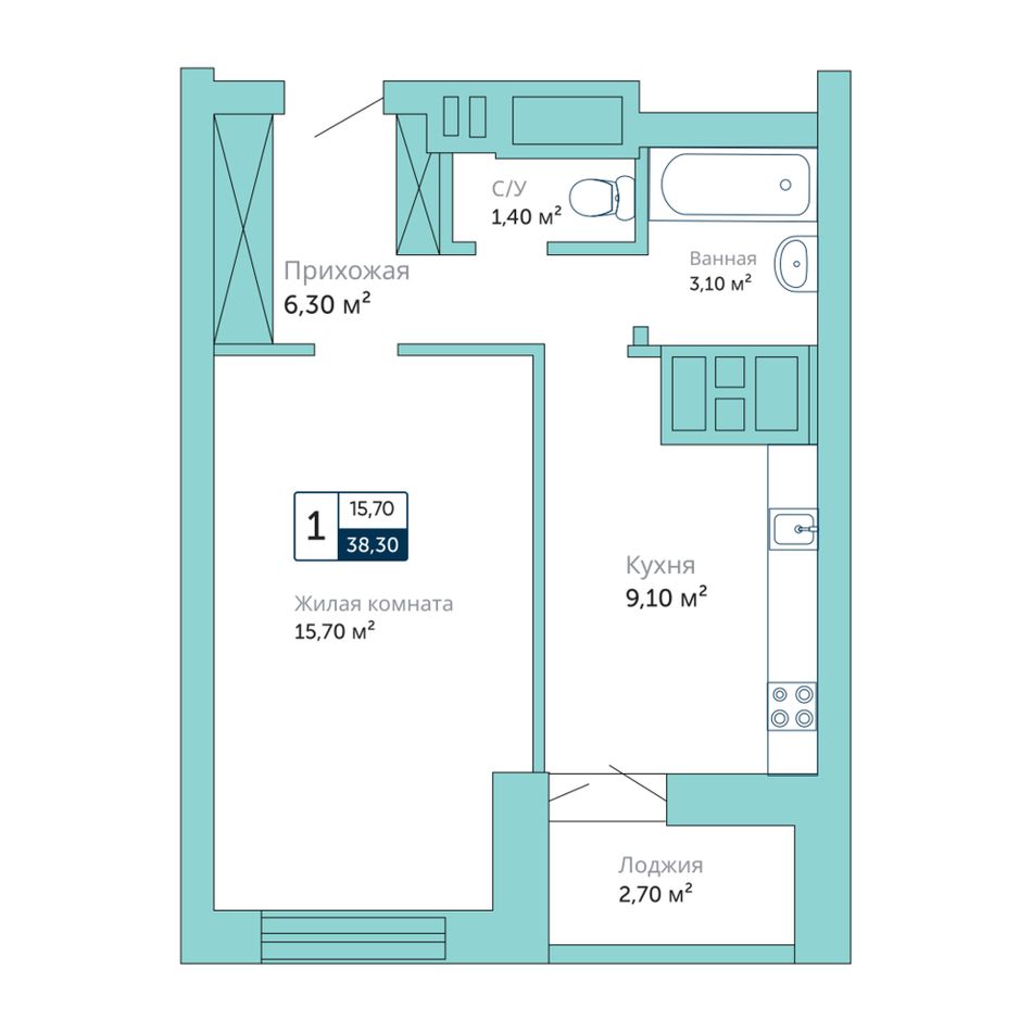 Общая площадь38,3 м²