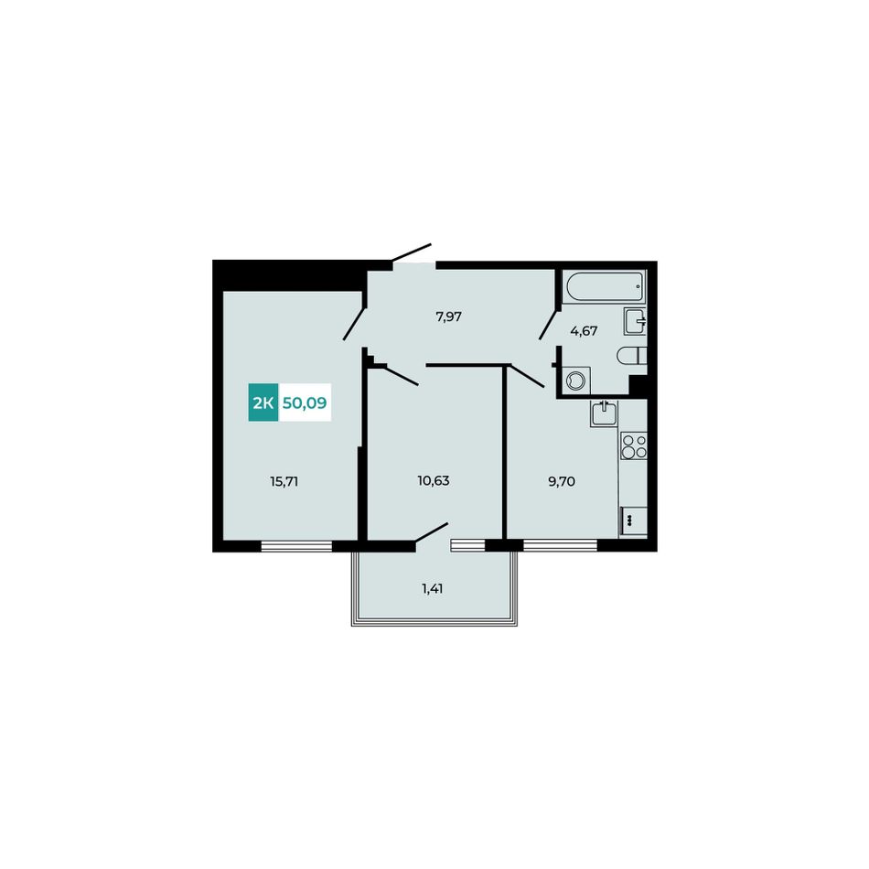 2-комнатная — 50,09 м² 1/8 эт. в Соседи