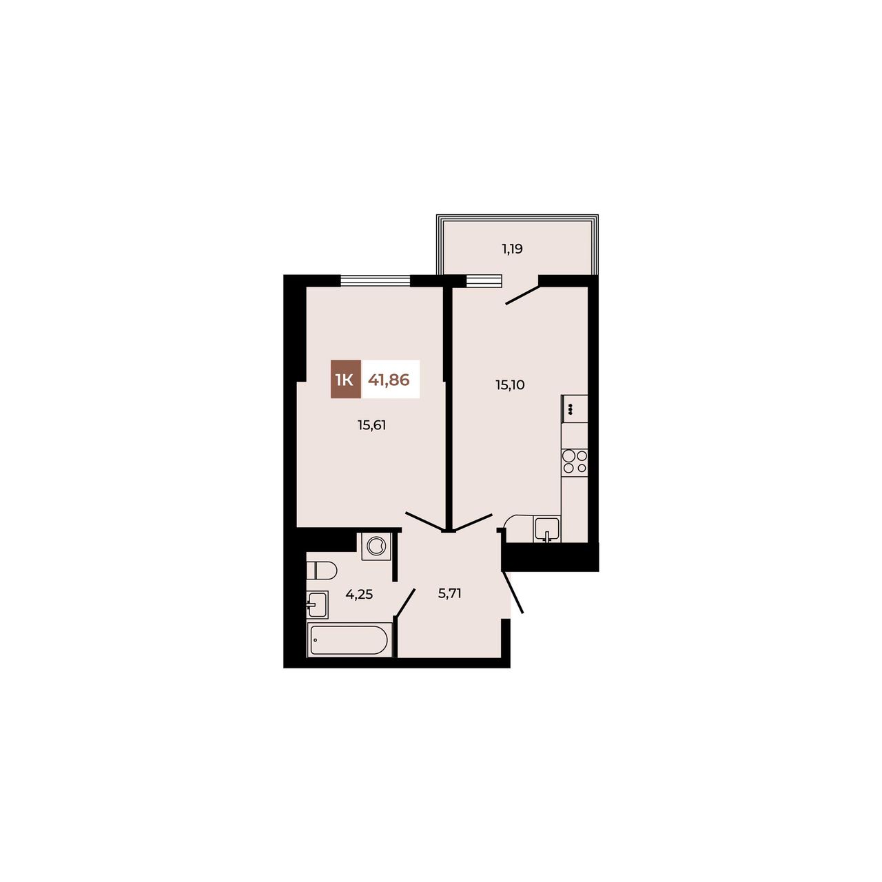 1-комнатная — 41,86 м² 2/8 эт. в Соседи