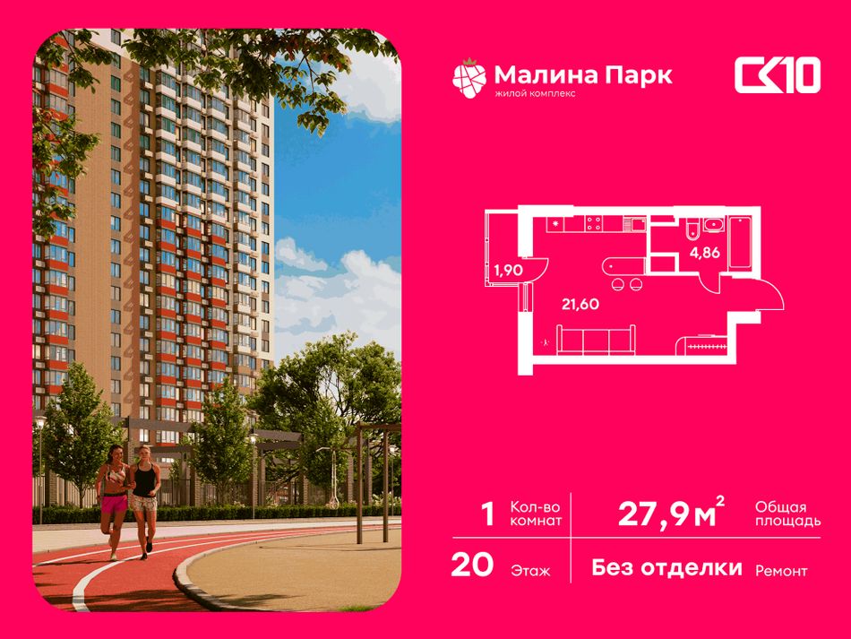 Студия — 27,94 м² 20/25 эт. в Малина Парк