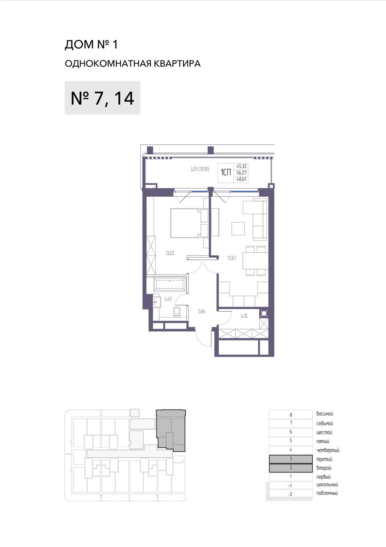 1-комнатная — 56,27 м² 2/8 эт. в Атлантида