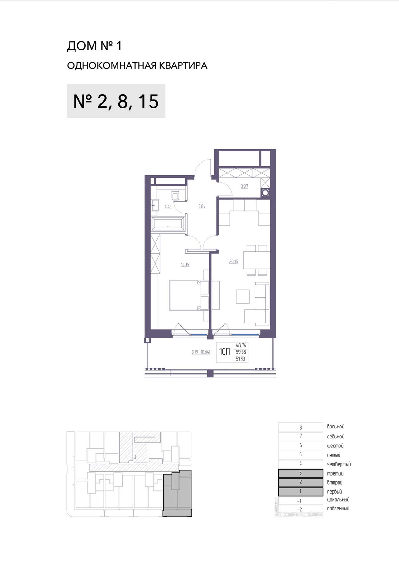 1-комнатная — 59,38 м² 2/8 эт. в Атлантида