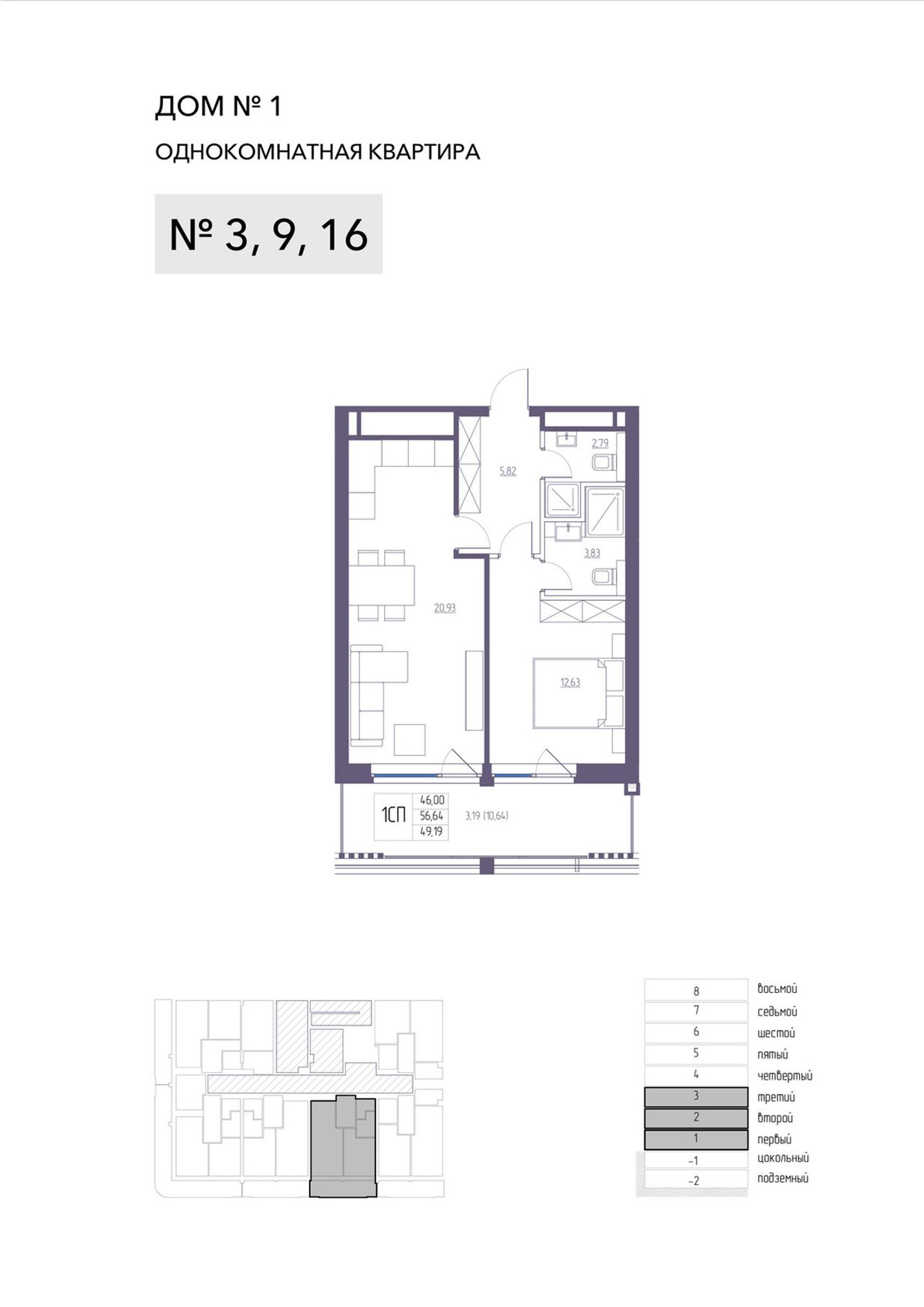 1-комнатная — 56,64 м² 2/8 эт. в Atlantida Living (Атлантида)