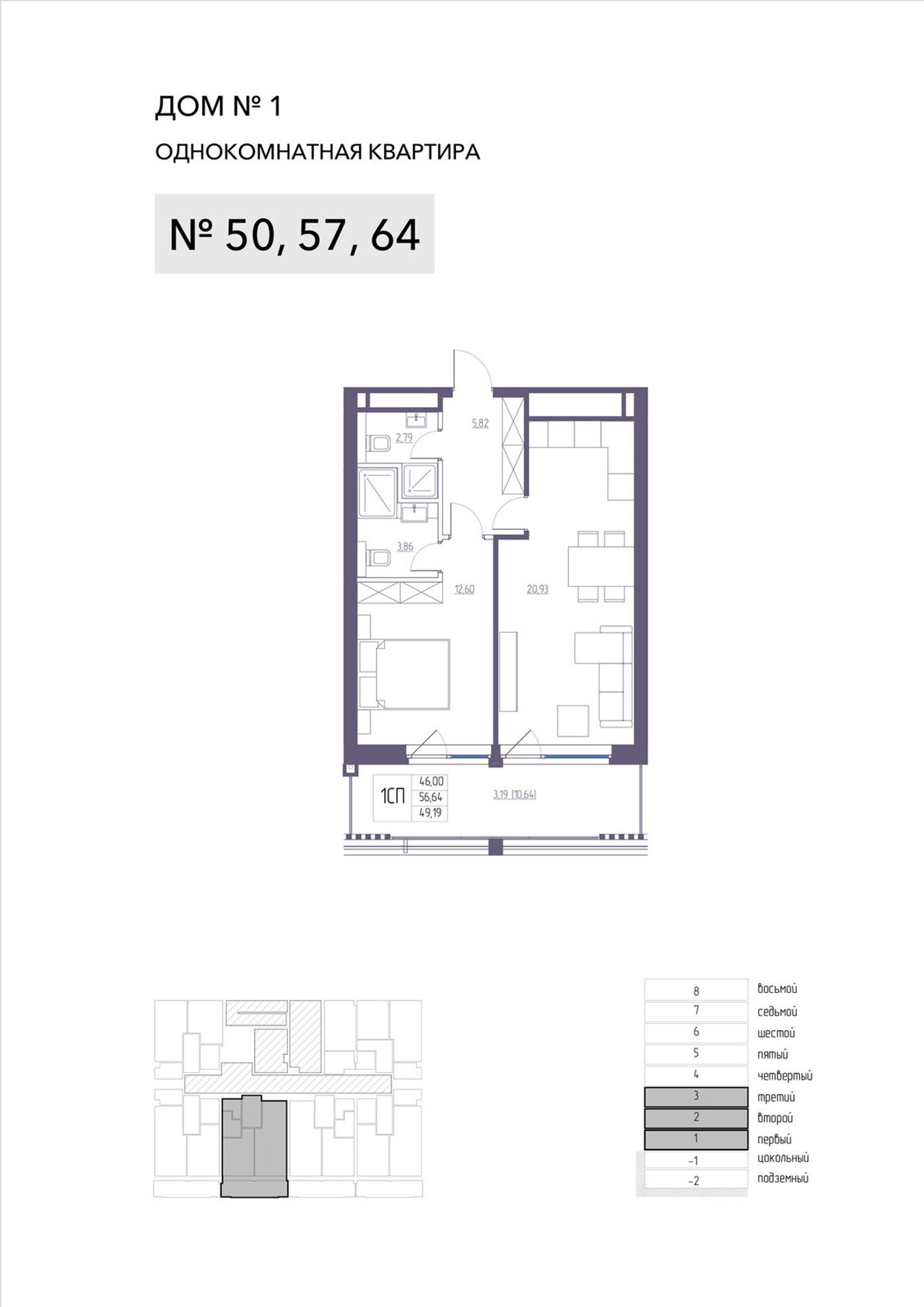 1-комнатная — 56,64 м² 2/8 эт. в Атлантида