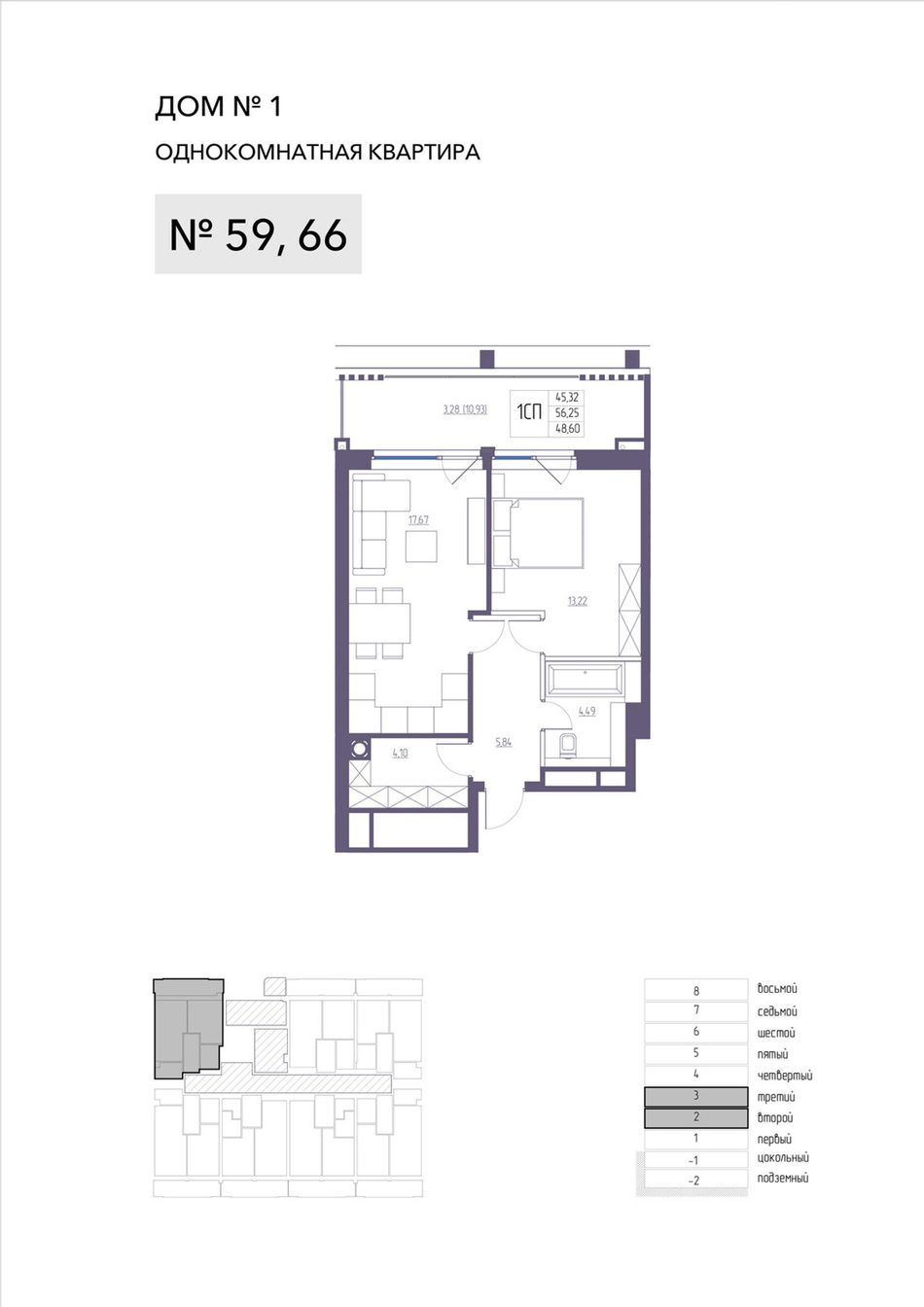 1-комнатная — 56,25 м² 2/8 эт. в Атлантида