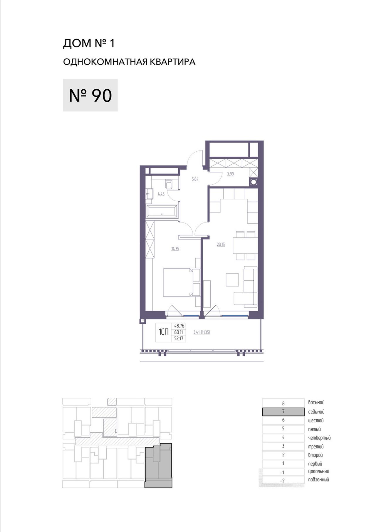1-комнатная — 60,11 м² 7/8 эт. в Atlantida Living (Атлантида)