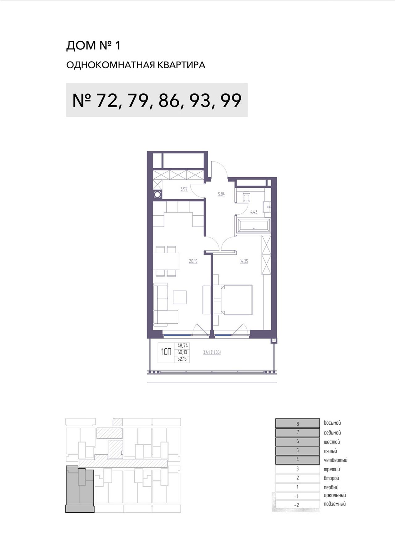 1-комнатная — 60,1 м² 7/8 эт. в Atlantida Living (Атлантида)