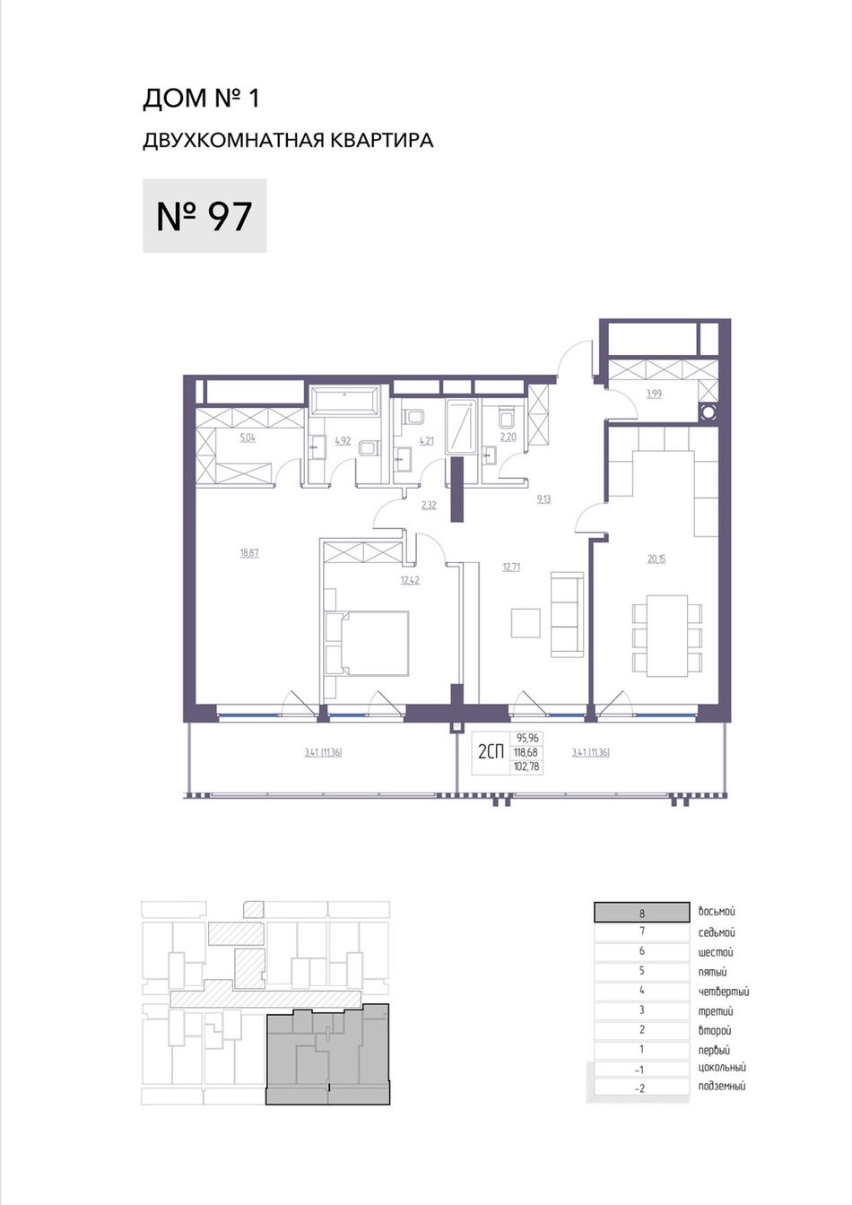 3-комнатная — 118,68 м² 8/8 эт. в Atlantida Living (Атлантида)