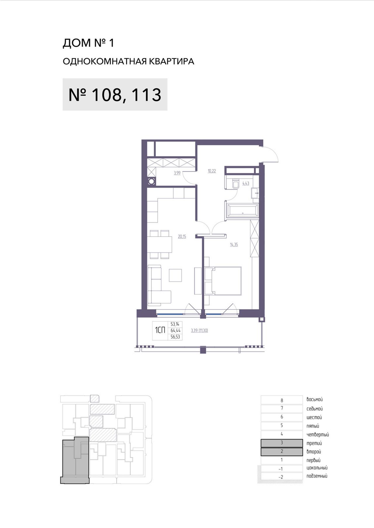 1-комнатная — 64,44 м² 2/8 эт. в Атлантида