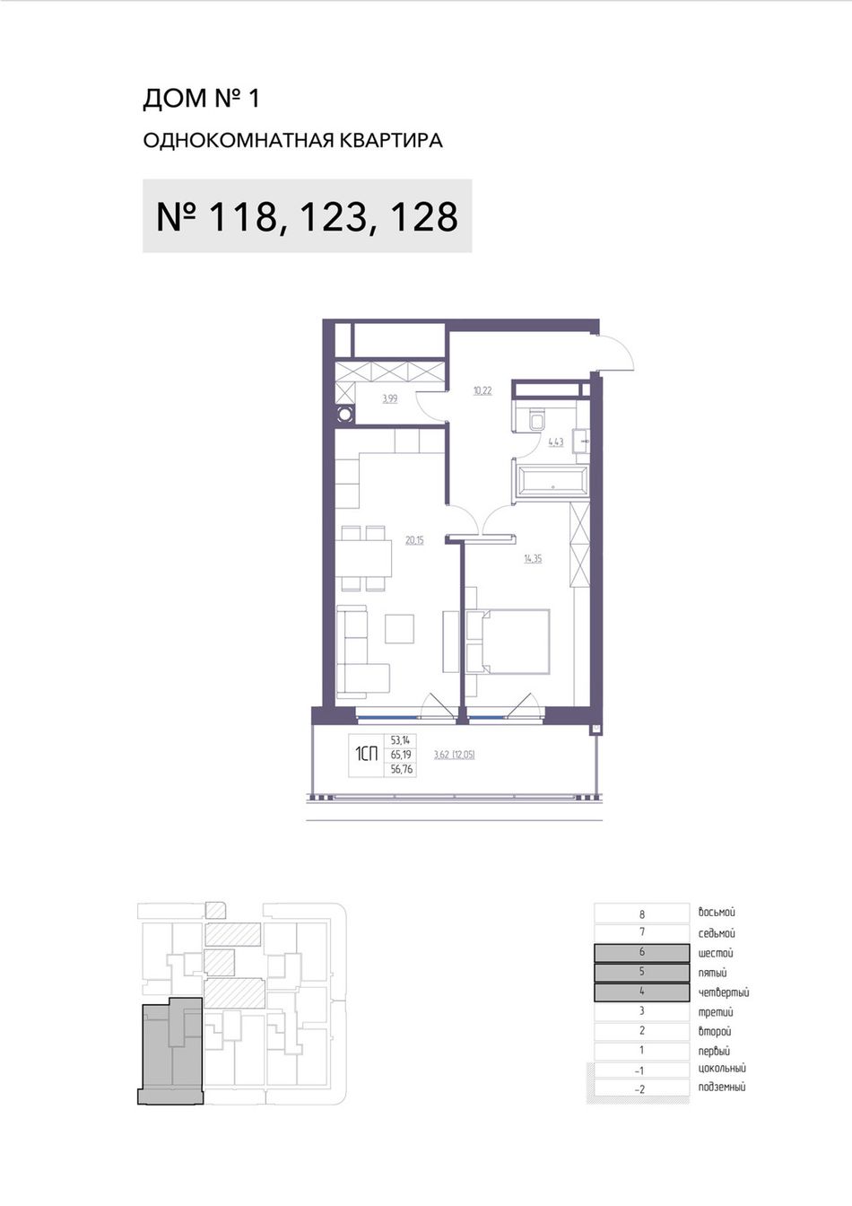 1-комнатная — 65,19 м² 4/8 эт. в Atlantida Living (Атлантида)