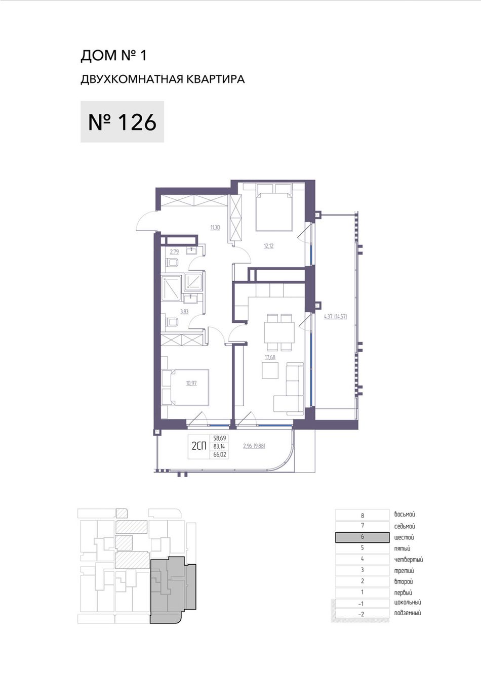 2-комнатная — 83,14 м² 6/8 эт. в Атлантида