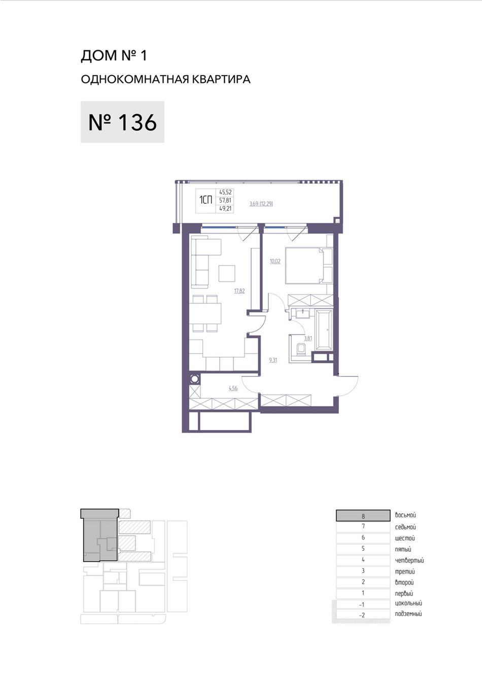 1-комнатная — 57,81 м² 8/8 эт. в Atlantida Living (Атлантида)