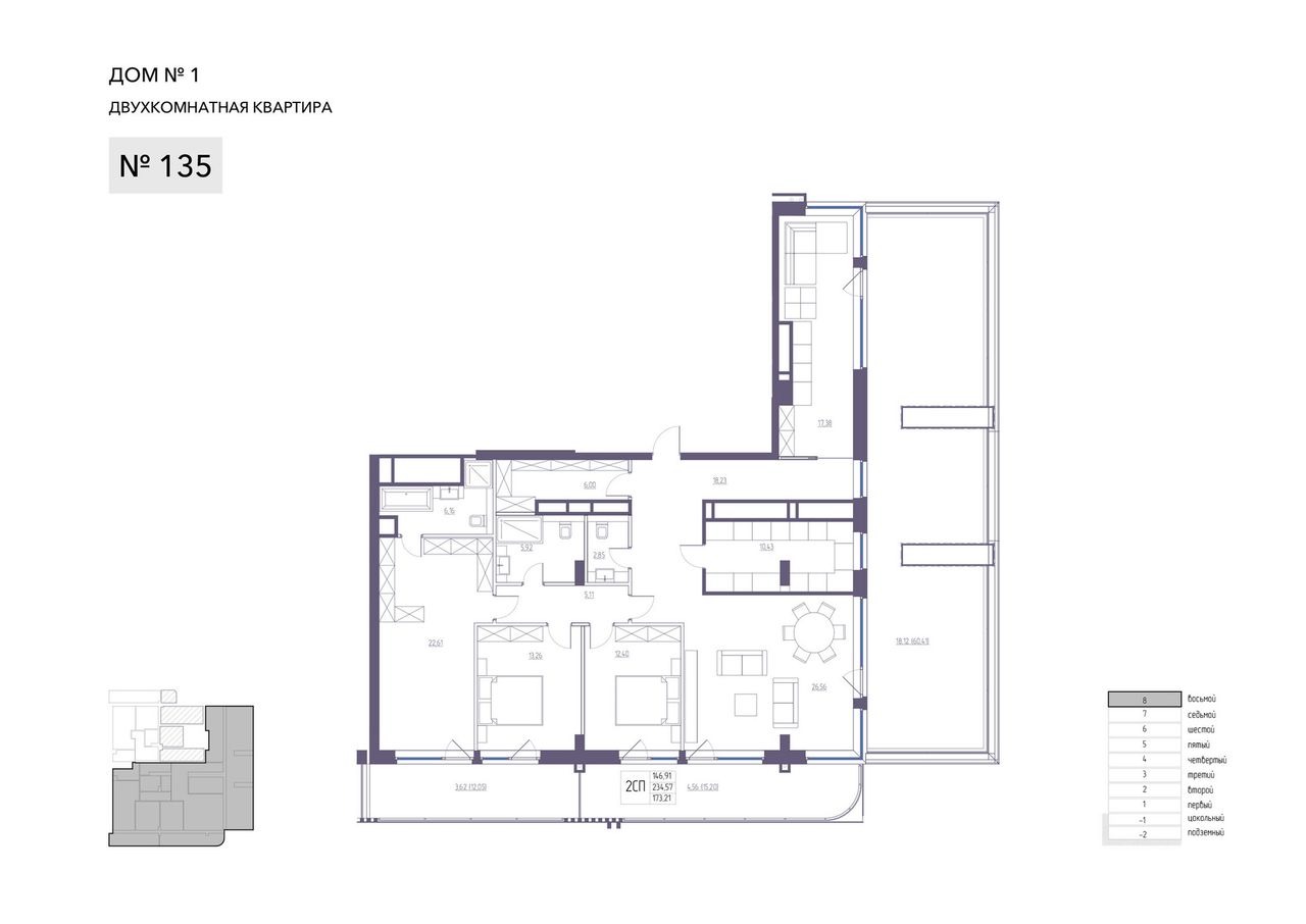 4+ комнатная — 234,57 м² 8/8 эт. в Atlantida Living (Атлантида)