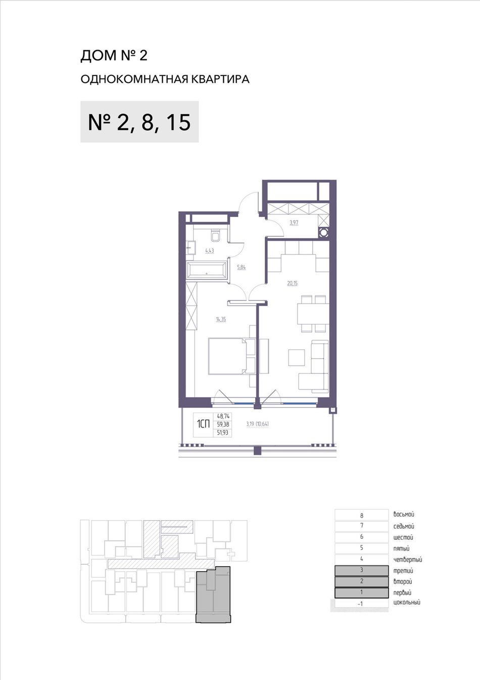 1-комнатная — 59,38 м² 1/8 эт. в Атлантида