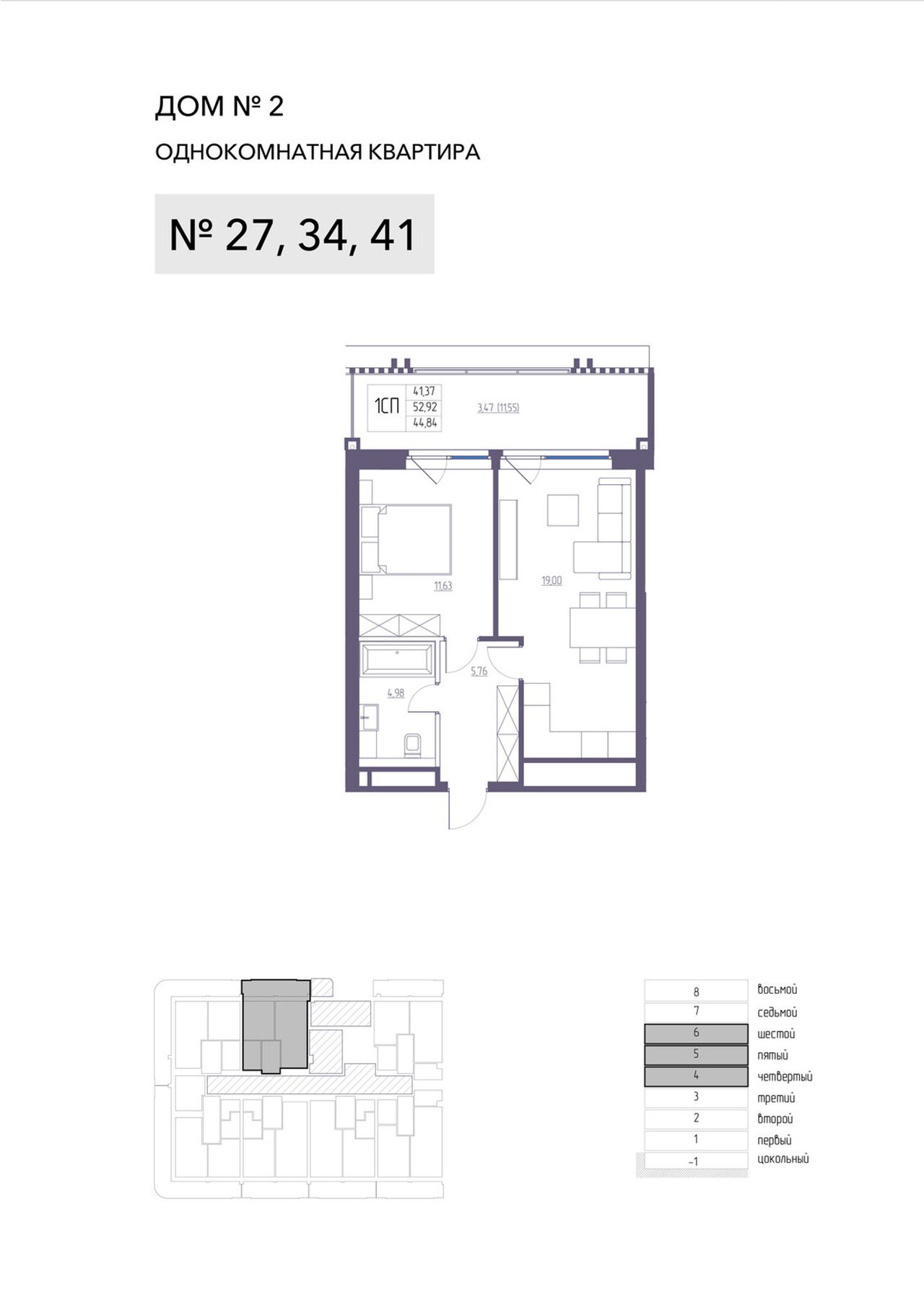 1-комнатная — 52,92 м² 5/8 эт. в Атлантида