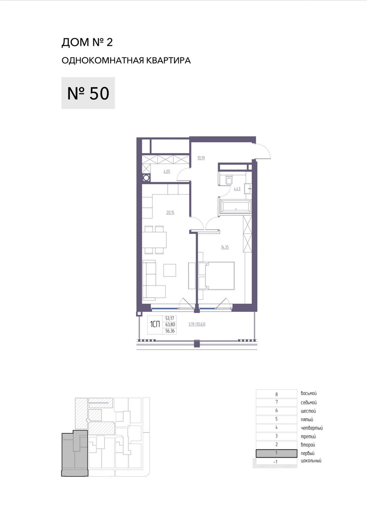 1-комнатная — 63,8 м² 1/8 эт. в Атлантида