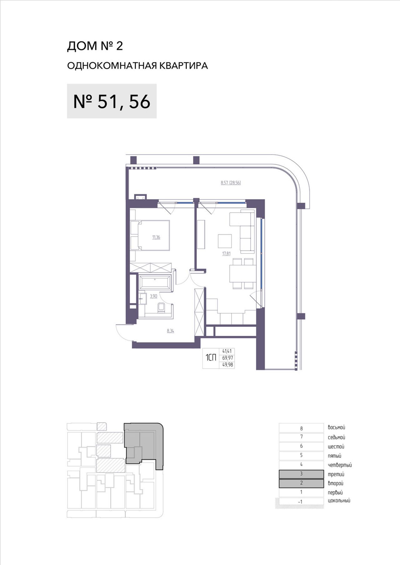 1-комнатная — 69,97 м² 2/8 эт. в Atlantida Living (Атлантида)