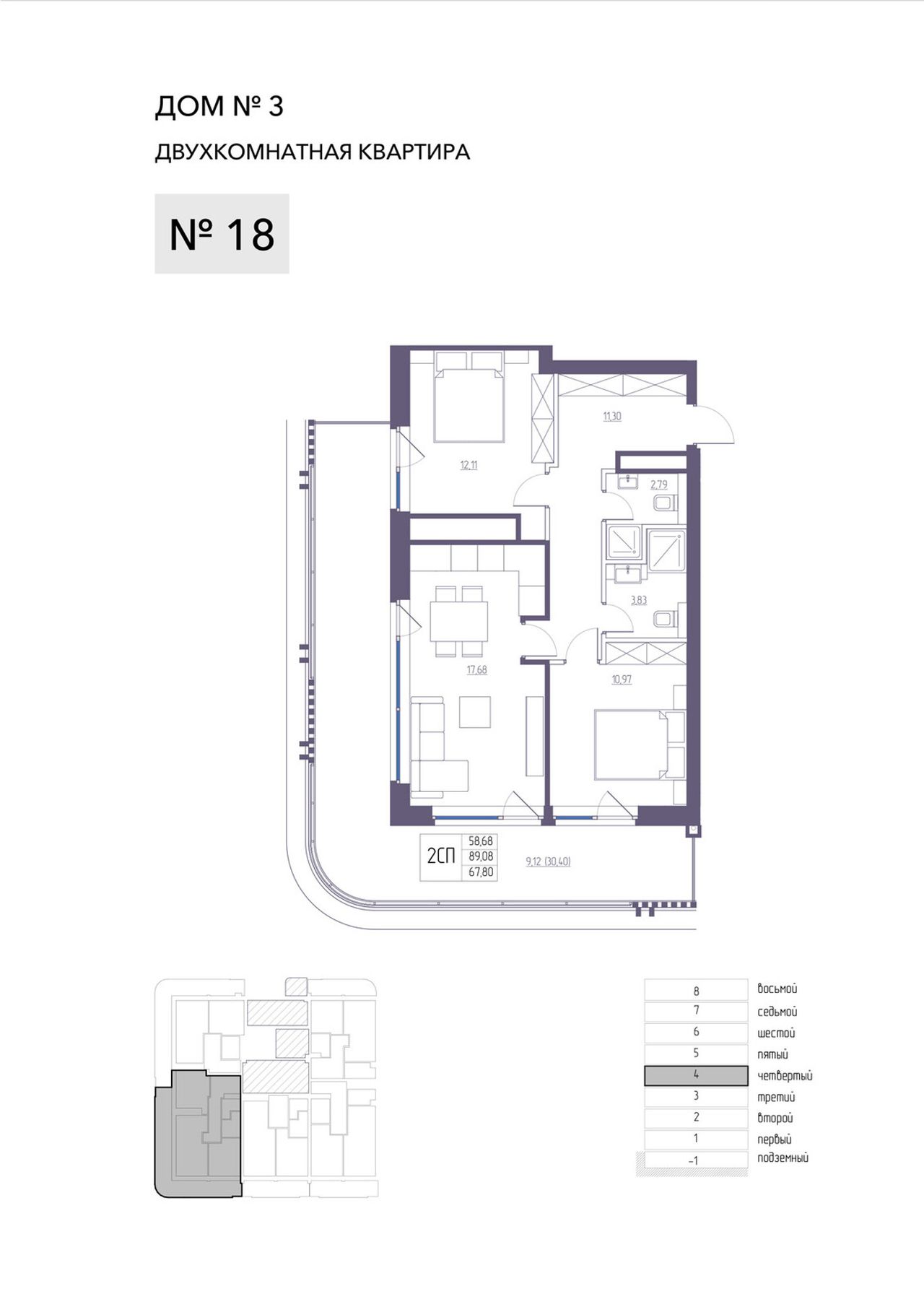 2-комнатная — 89,08 м² 4/8 эт. в Атлантида
