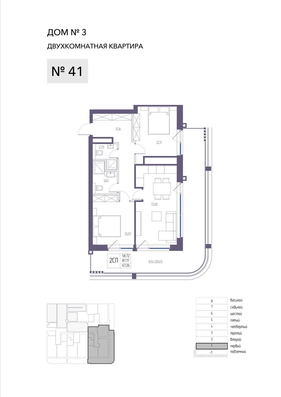 2-комнатная — 87,17 м² 1/8 эт. в Атлантида