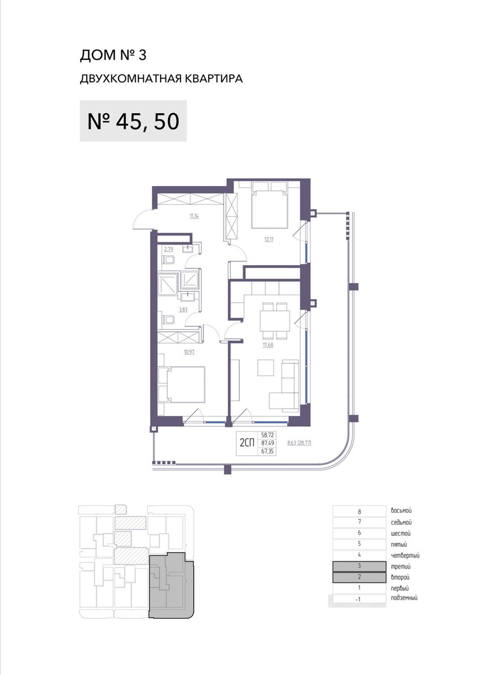2-комнатная — 87,49 м² 2/8 эт. в Атлантида
