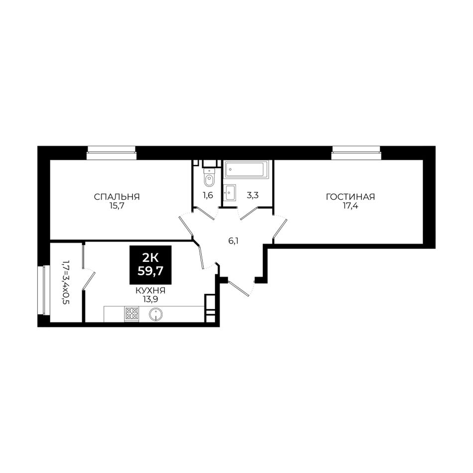 2-комнатная — 59,7 м² 18/24 эт. в Новый Ставрополь