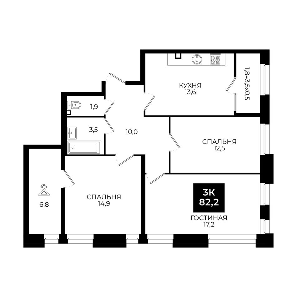 3-комнатная — 82,2 м² 2/24 эт. в Новый Ставрополь