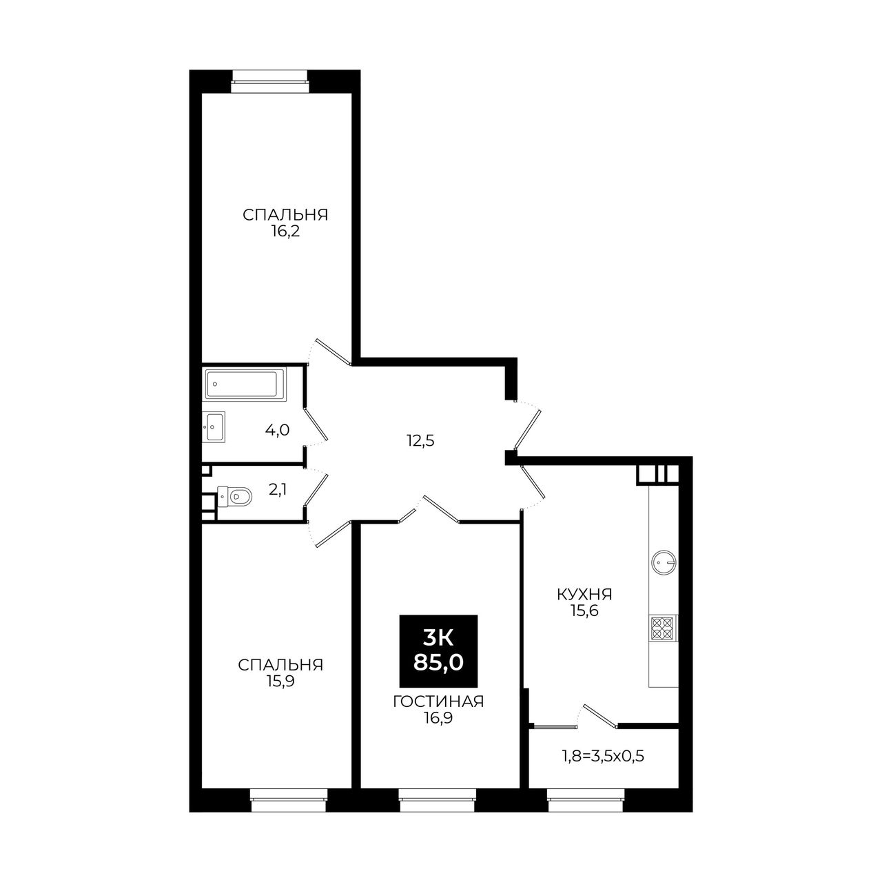3-комнатная — 85 м² 12/24 эт. в Новый Ставрополь