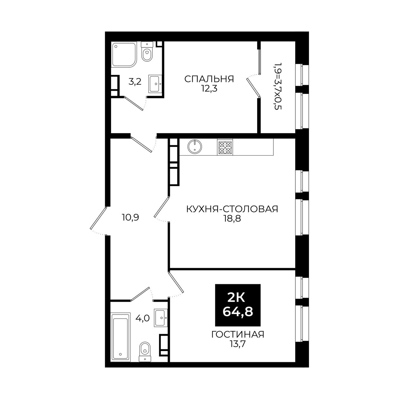 Общая площадь64,8 м²