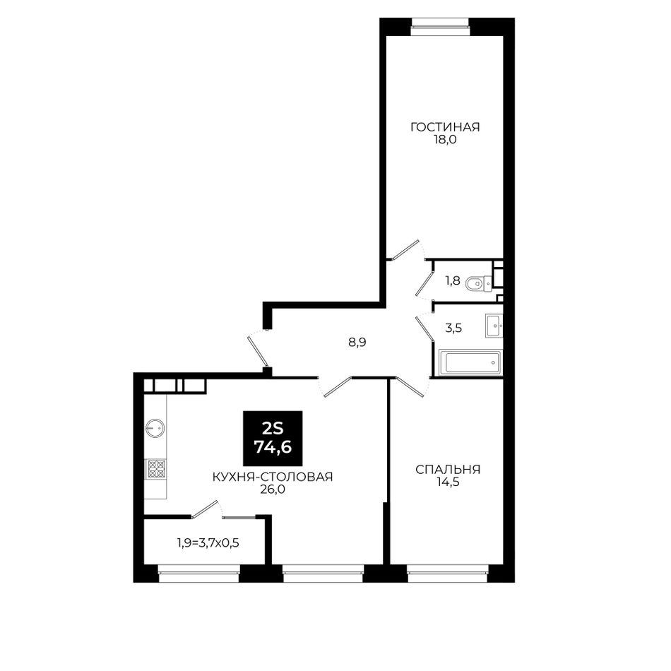 Общая площадь74,6 м²
