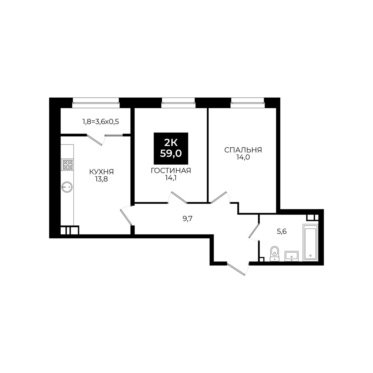 2-комнатная — 59 м² 3/24 эт. в Новый Ставрополь