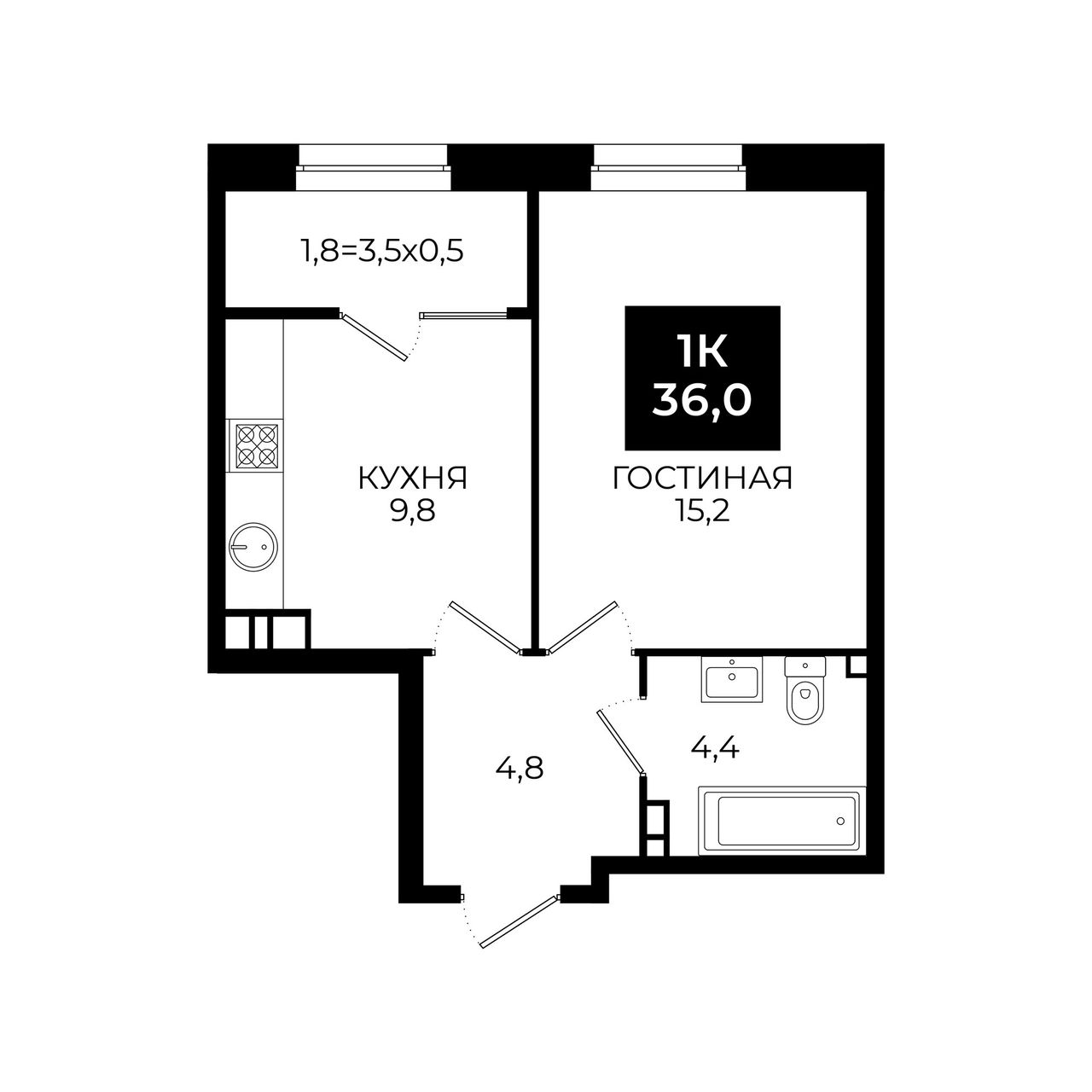 1-комнатная — 35,7 м² 13/24 эт. в Новый Ставрополь