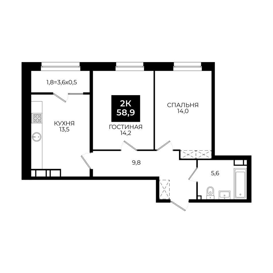 2-комнатная — 58,9 м² 23/24 эт. в Новый Ставрополь