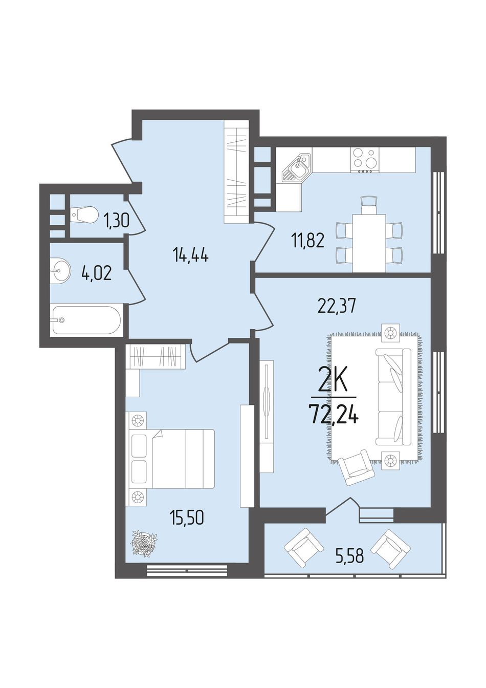 Общая площадь72,24 м²