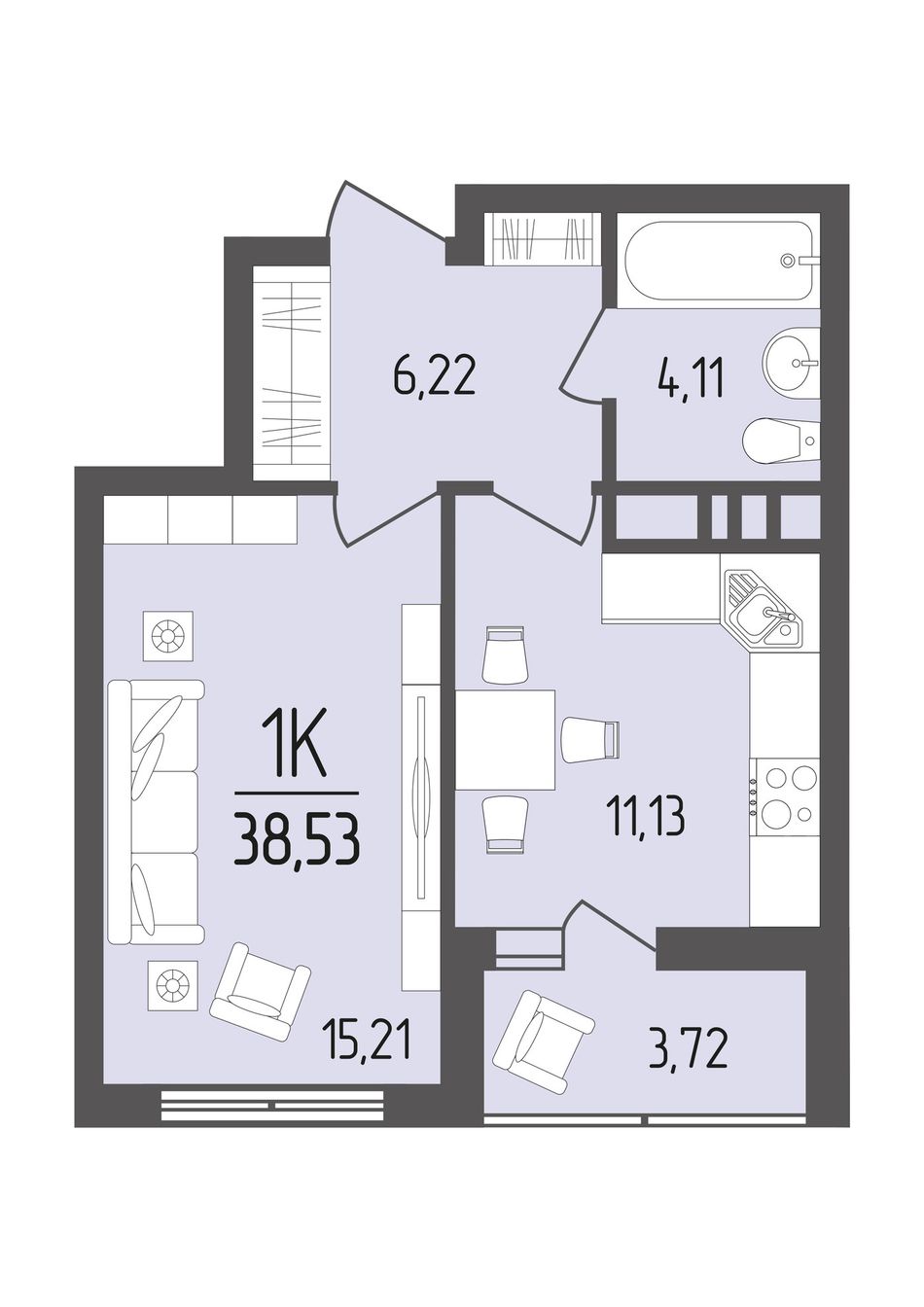 1-комнатная — 38,53 м² 9/18 эт. в Кумир