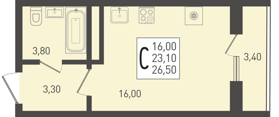 | Студия | 26 - 42 м² | 4 - 7 млн ₽ |
