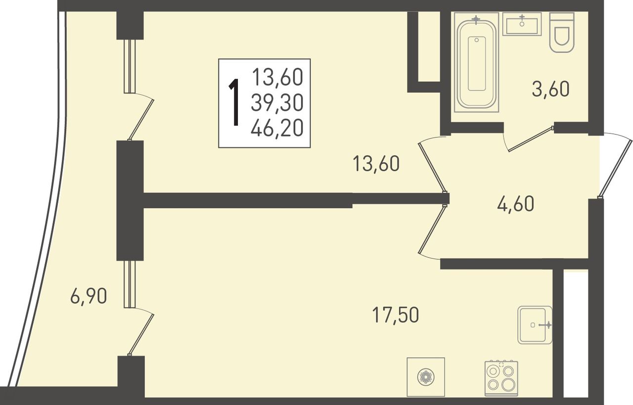 1-комнатная — 46,2 м² 21/24 эт. в Огурцы