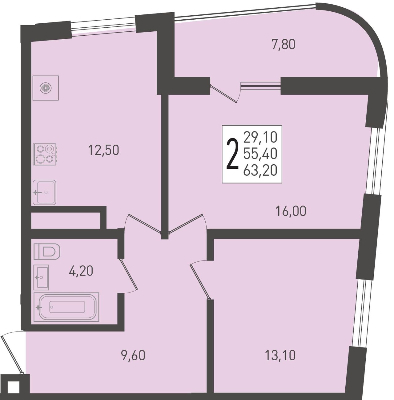 2-комнатная — 63,2 м² 20/24 эт. в Огурцы