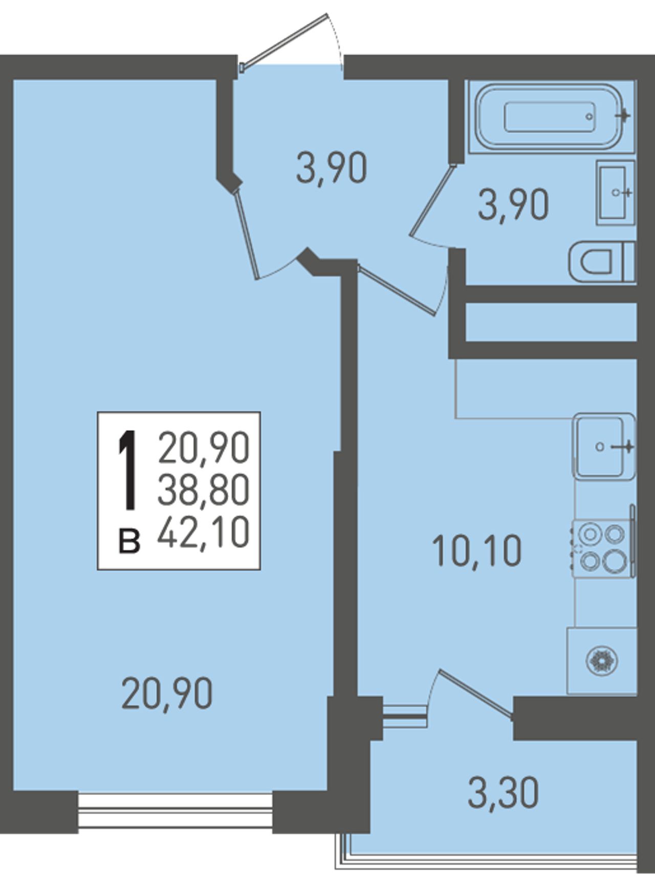 | 1-комн. | 37 - 47 м² | 3,9 - 5,1 млн ₽ |