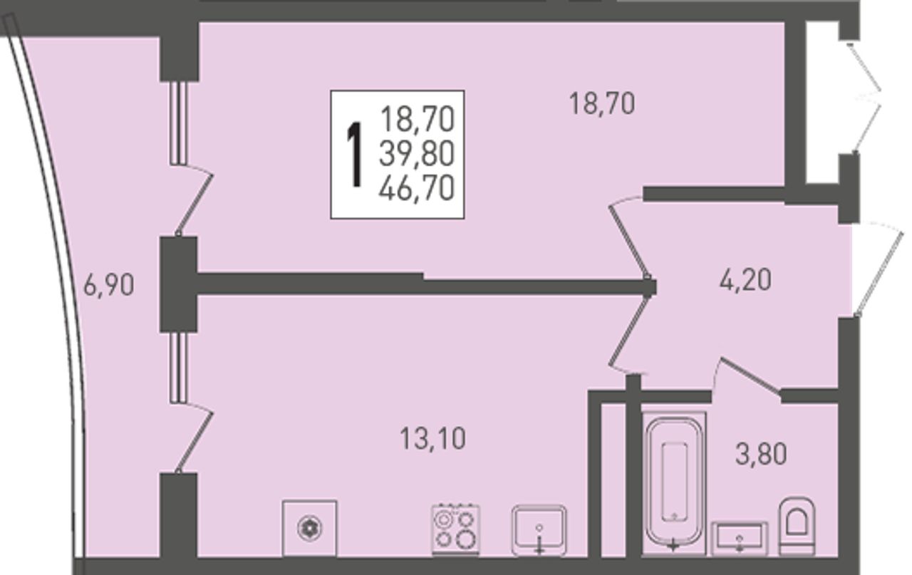 | 1-комн. | 37 - 47 м² | 3,9 - 5,1 млн ₽ |