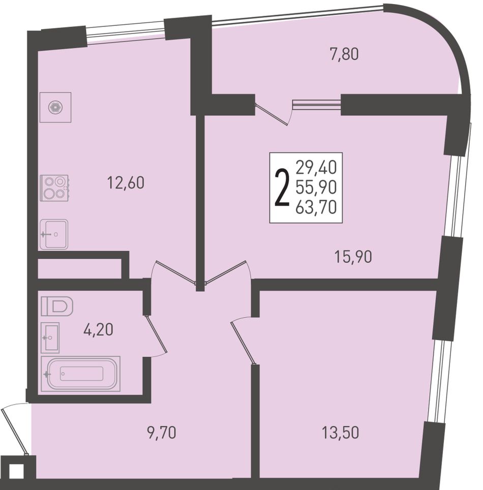 | 2-комн. | 58 - 85 м² | 7,1 - 11,4 млн ₽ |