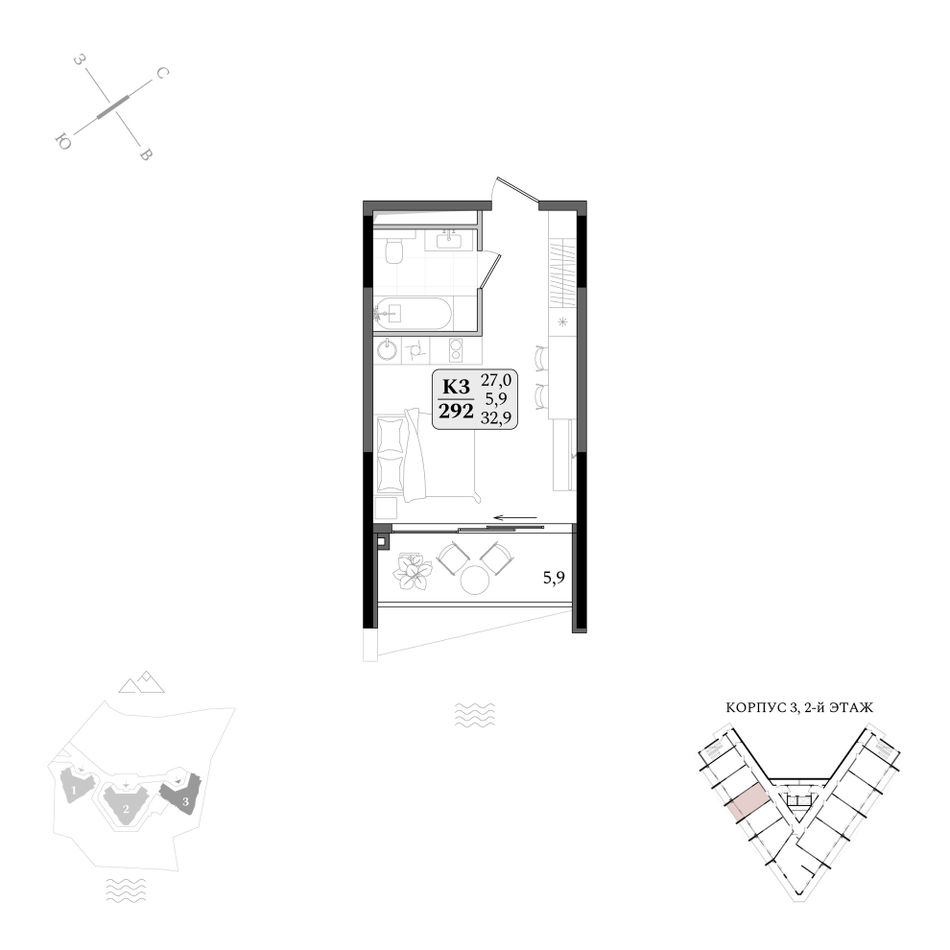 Продаются апартаменты № 3/292 площадью 32,9 м2