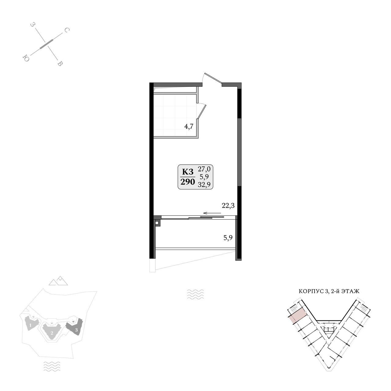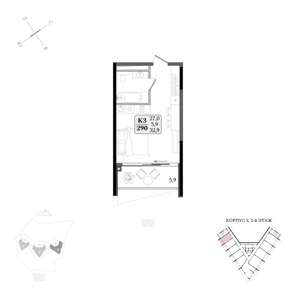 Продаются апартаменты № 3/290 площадью 32,9 м2