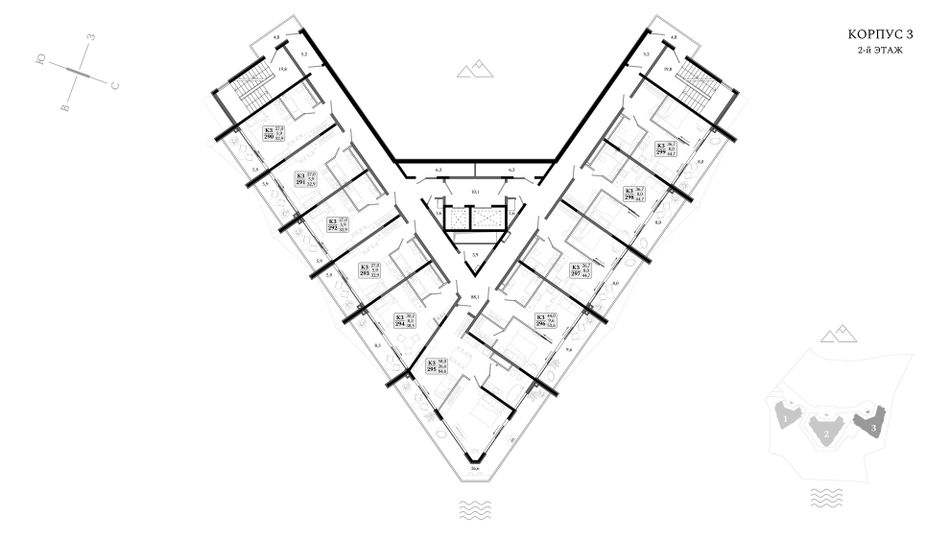 В комплексе представлена широкая линейка планировочных решений от студий до двухуровневых пентхаусов на последних этажах.