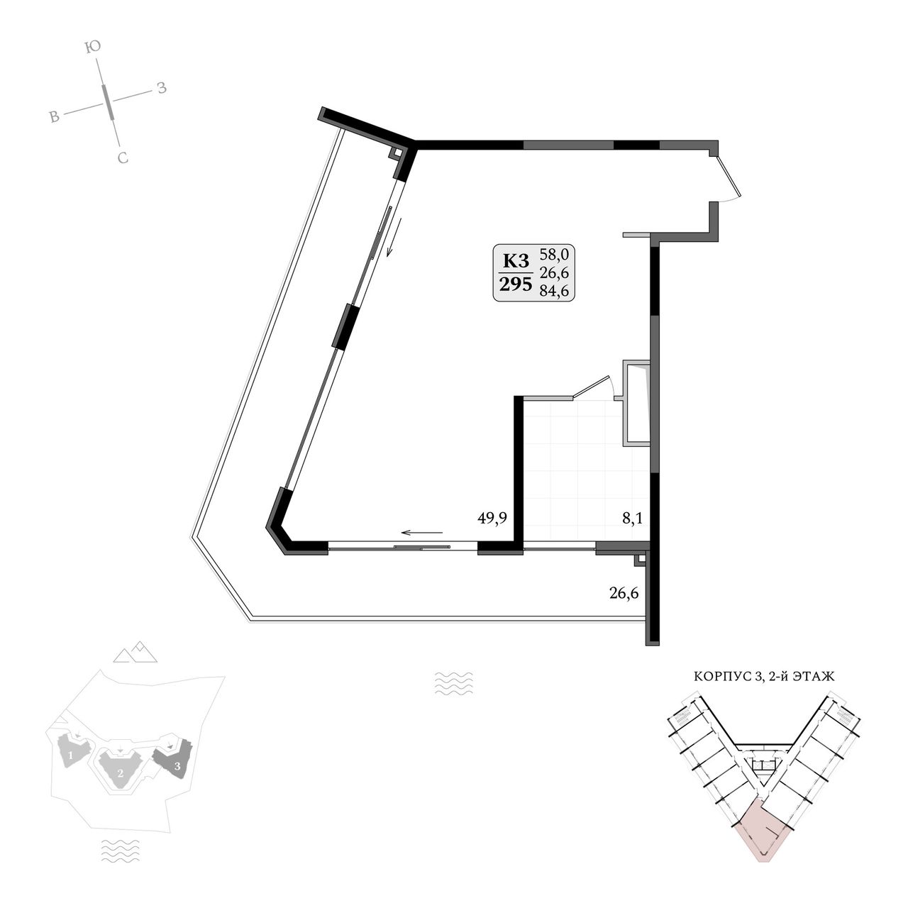 Продаются апартаменты № 3/295 площадью 84,6 м2